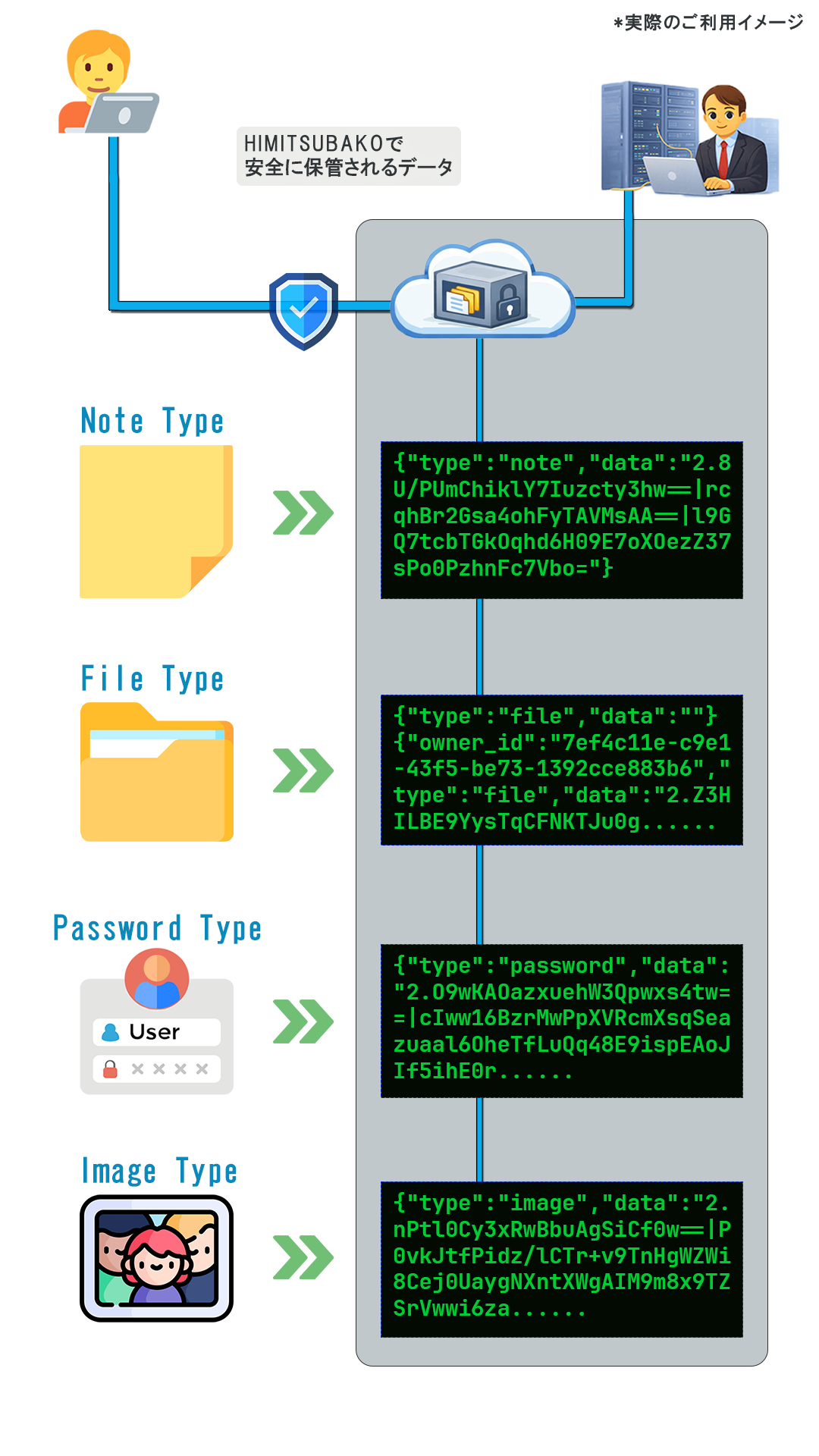 あなたのデバイスだけで暗号化サーバーには、あなただけが持つ鍵のみで復号化可能な、暗号化されたデータのみ